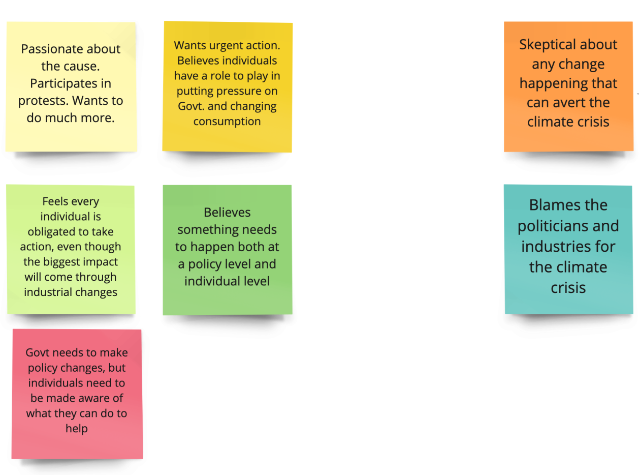 To dig a little deeper and get more insights into the general attitudes towards Climate Change, an open card sort research method was implemented to: